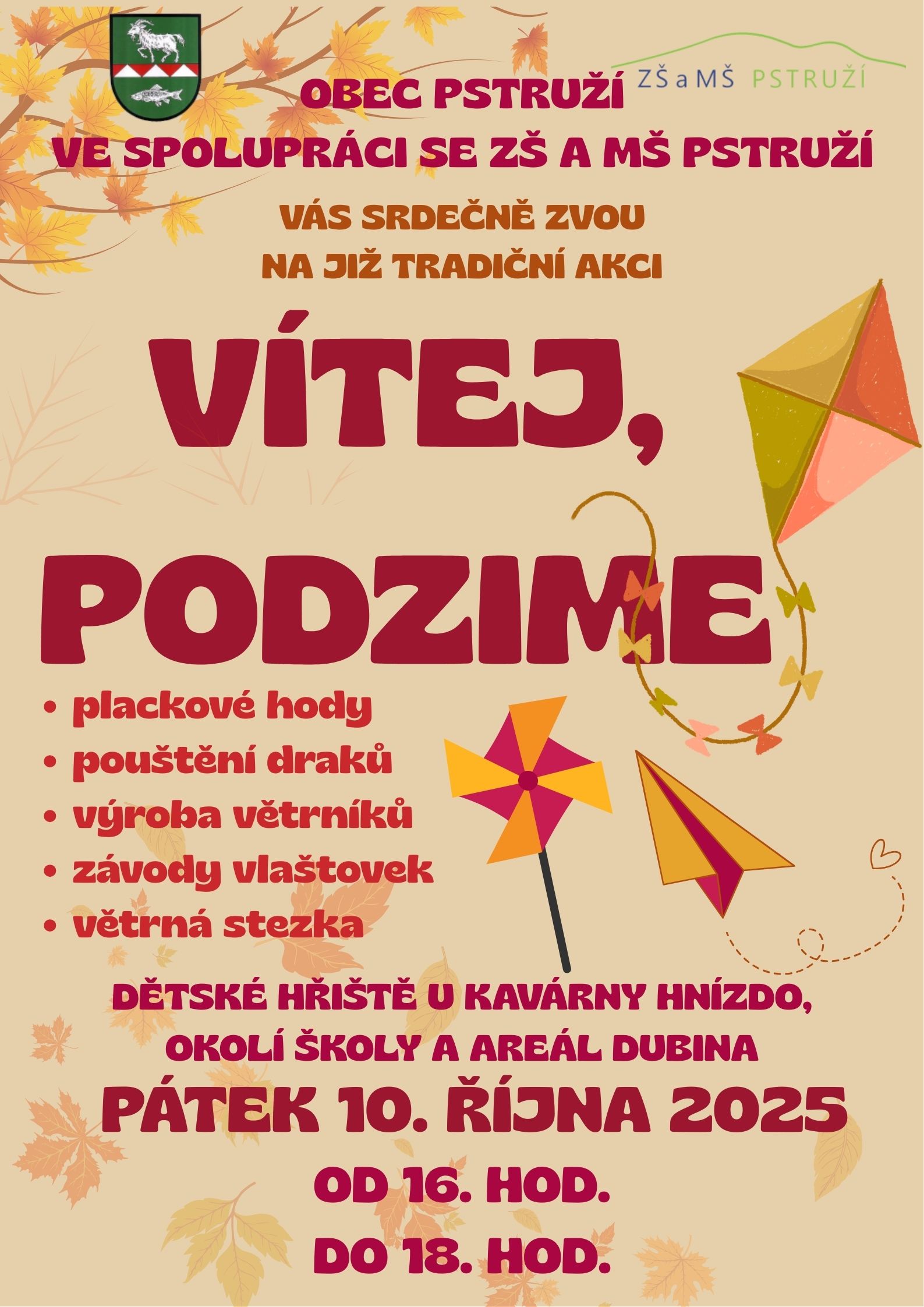 Vítej podzime-plackové hody a drakiáda.10.října 2025 od 15:30 dětské hřiště a okolí školy